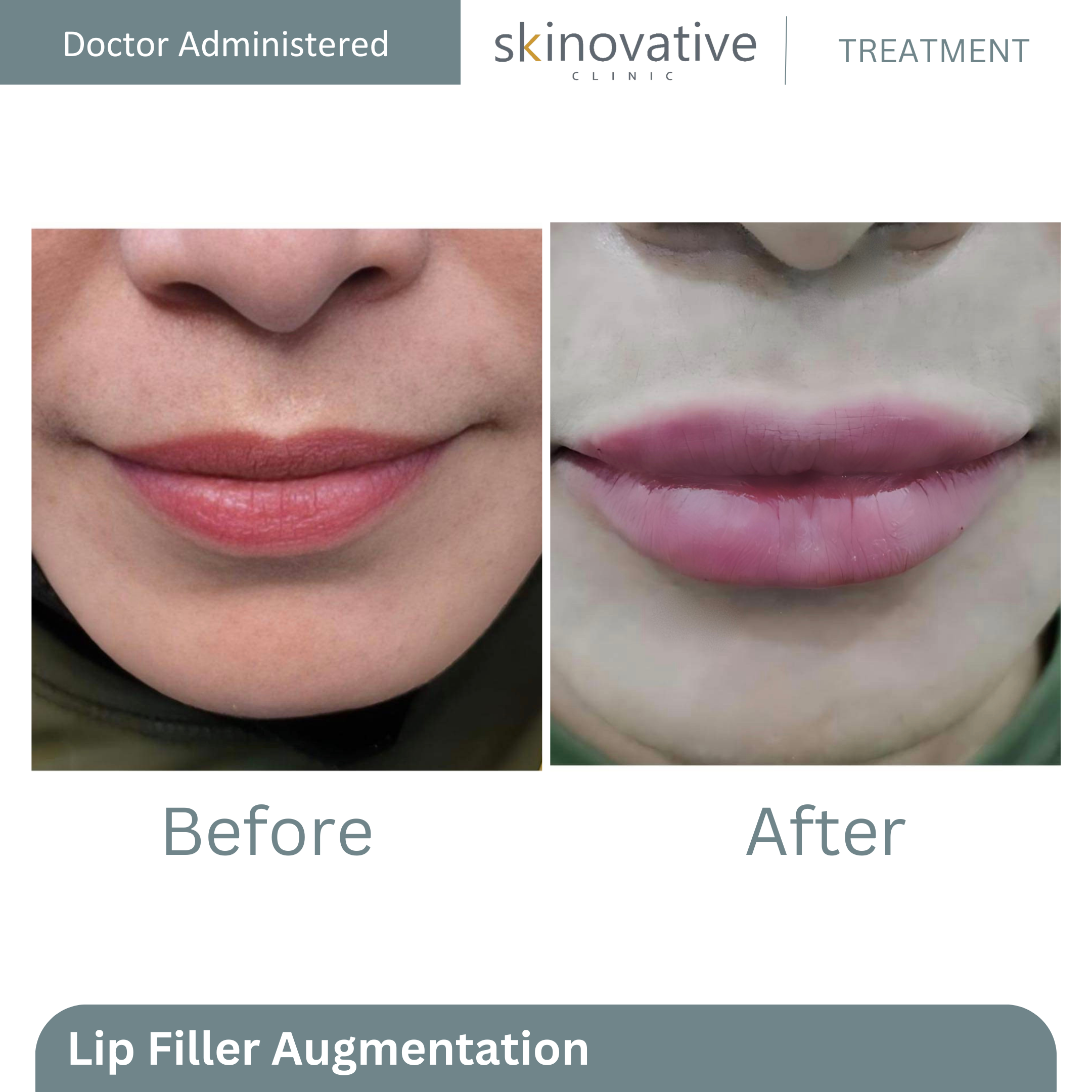 Plump and perfect your pout instantly with our Lip Filler Augmentation at Skinovative Clinic, using either Korean filler (lasting 6–8 months) or Premium filler (lasting 12–18 months). This non-surgical treatment adds natural-looking volume, enhances lip shape, and smooths fine lines for a soft, youthful finish. Perfect for clients seeking subtle enhancement or a more defined, kissable pout, our Lip Filler delivers immediate results with minimal downtime—no overdone look, no duck lips, just beautifully balanced lips.